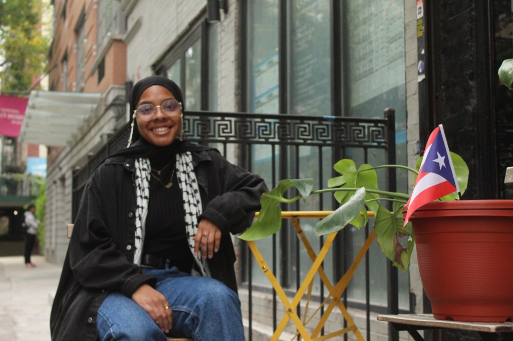 Alyssa Monet, a Puerto-Rican revert to Islam, poses at a coffee shop in Harlem. Fall 2024, Carolina Pedrazzi