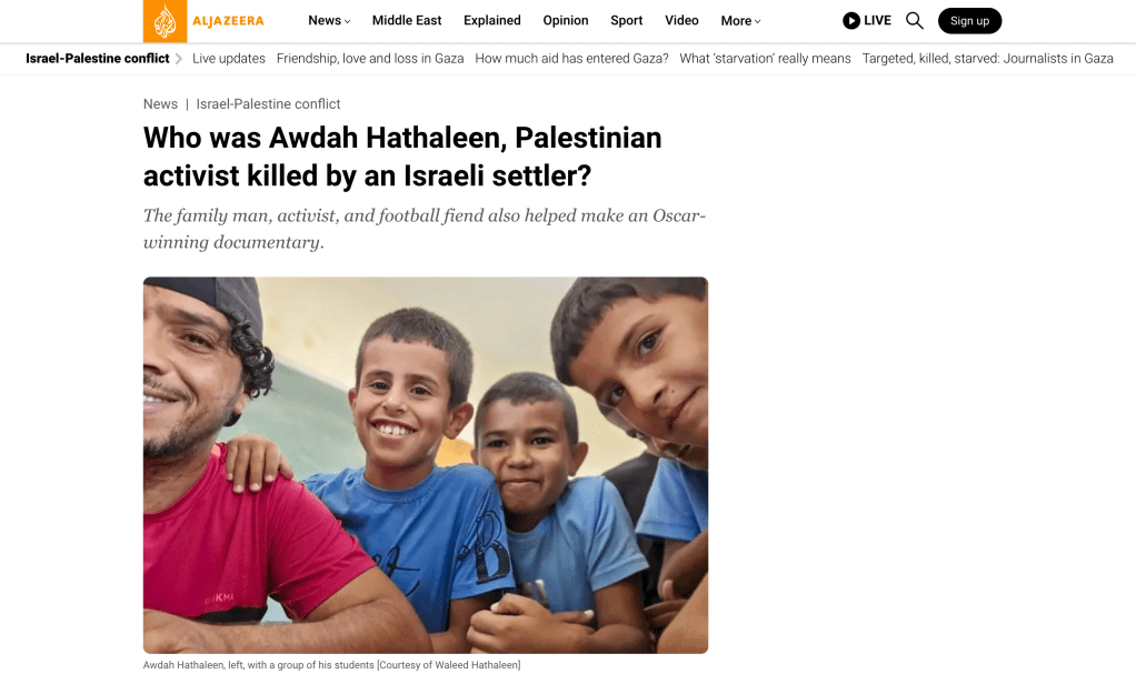 https://www.aljazeera.com/news/2025/7/29/who-was-awdah-hathaleen-palestinian-activist-killed-by-an-israeli-settler